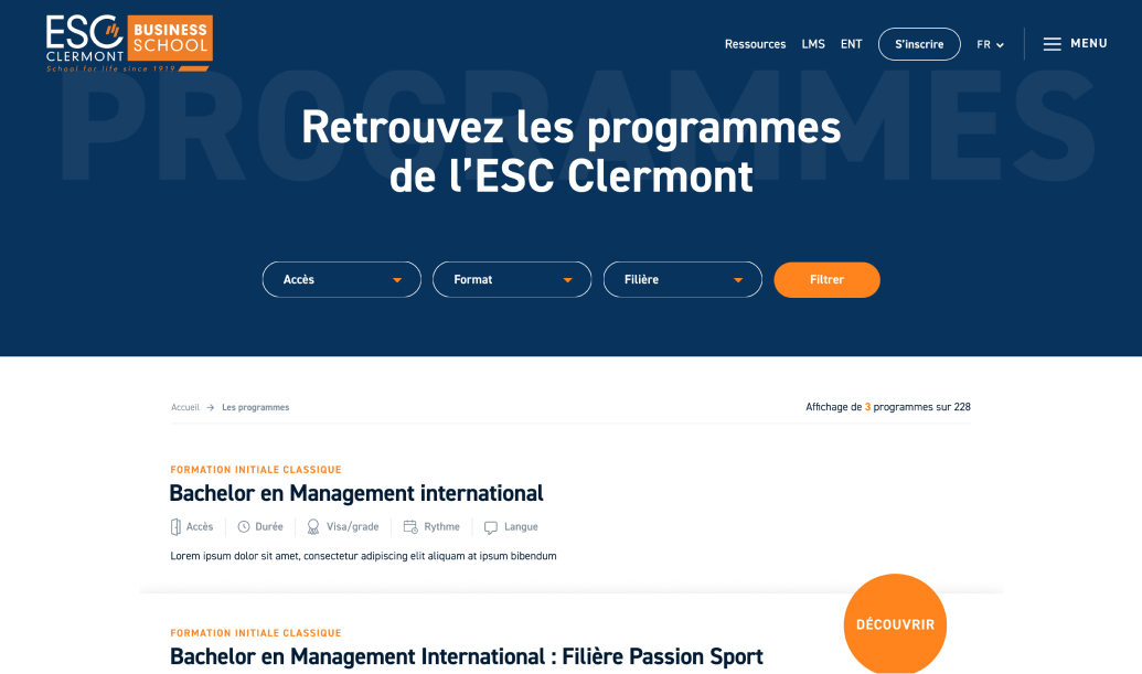 - Un site facile à administrer par les équipes de Clermont School of Business