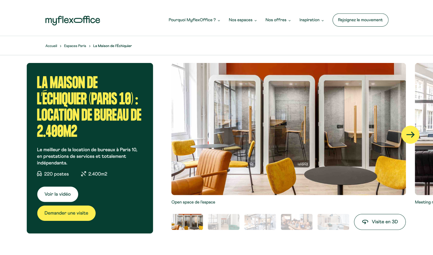 Ce fonctionnement permet aux équipes de Myflexoffice d’être complètement autonomes dans la création de nouvelles pages, et de pouvoir adapter si besoin certaines pages en fonction des statistiques par exemple.