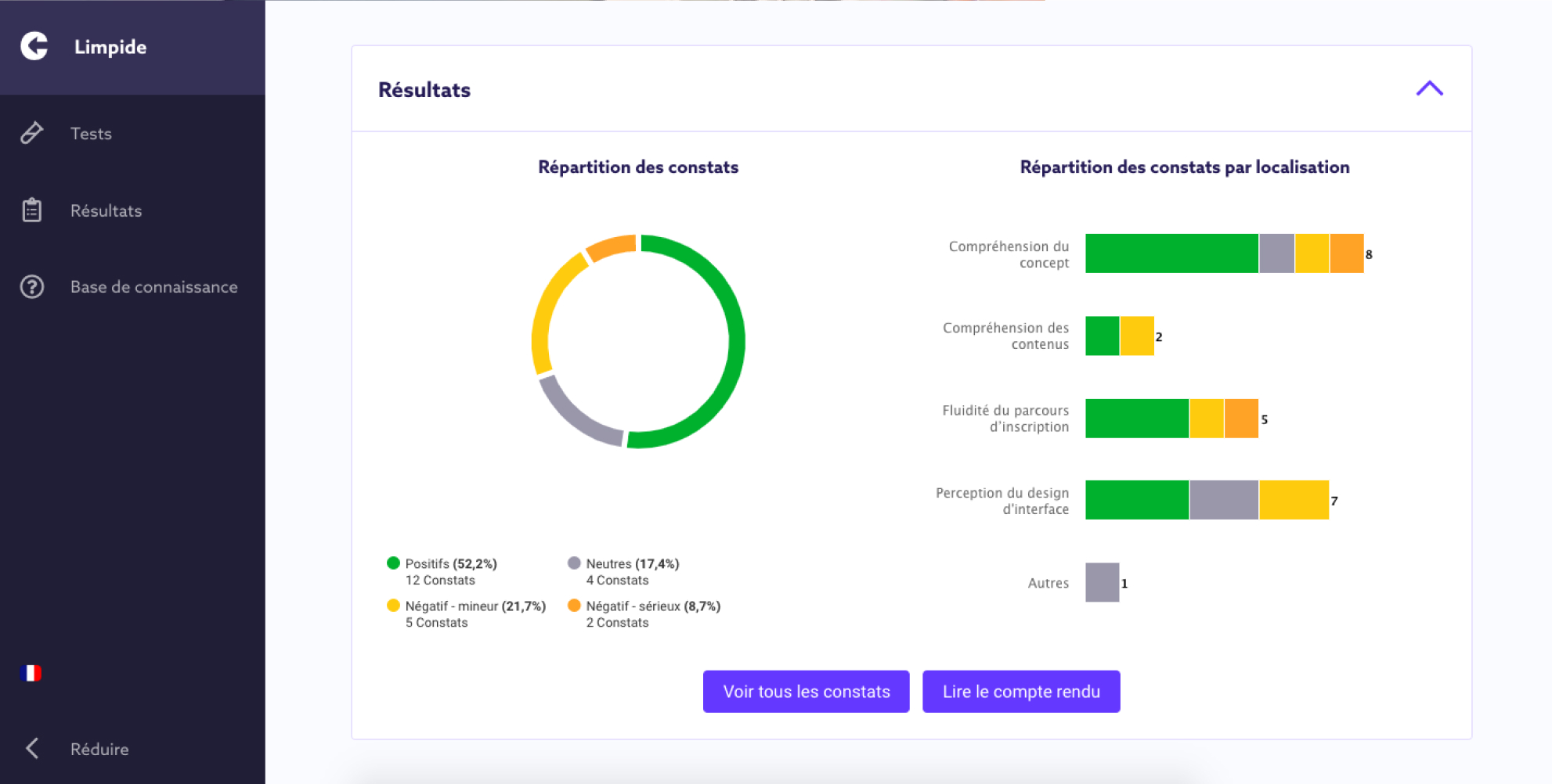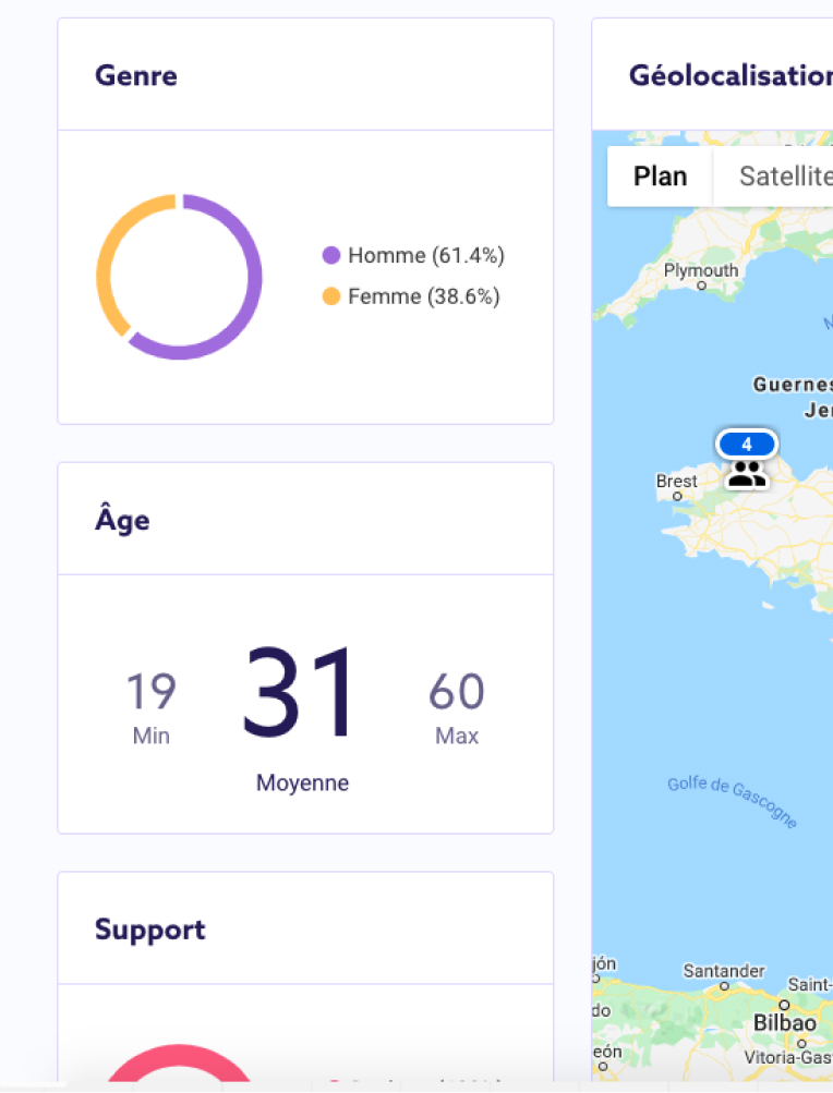 L’outil testapic nous a permis de faire 10 tests qualitatifs sous forme de vidéo et 100 tests questionnaire. Nous avons fait tester un prototype UI InVision du site que nous avons imaginé. 4 objectifs ont guidé nos tests : La compréhension du concept, la compréhension des contenus, la perception du design d’interface et la fluidité du tunnel d’inscription. Nous avons pu tirer des recommandations pour optimiser le site avant de l’engager la phase de développement.