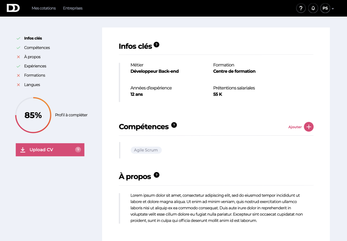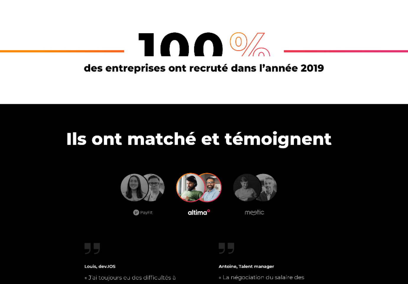 Nous nous sommes recentrés sur les besoins réels des talents et des recruteurs. C’est notamment au travers d’une série d’interviews utilisateurs que nous avons pu isoler des points spécifiques devenus piliers dans notre réflexion.