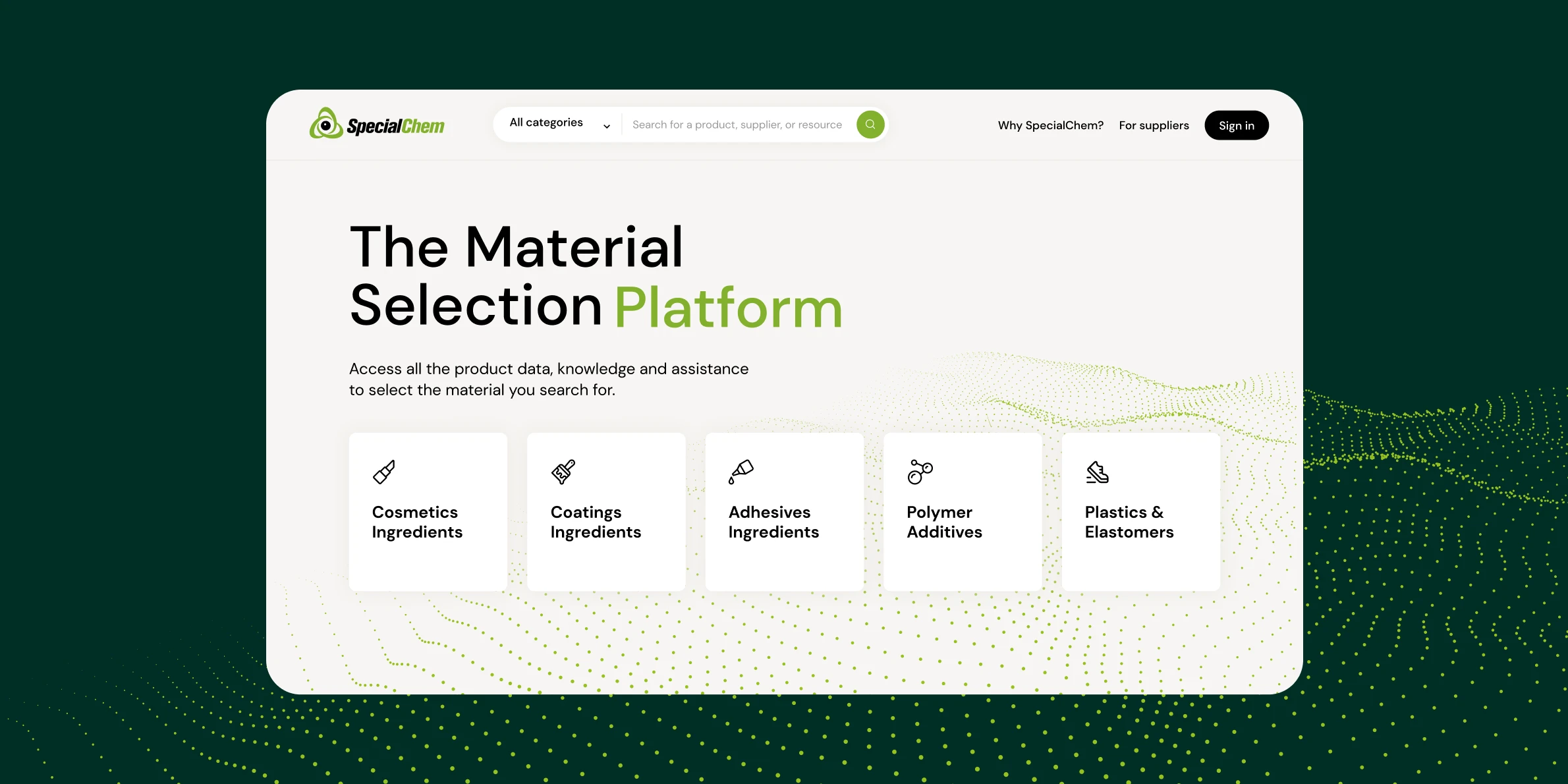 SpecialChem est la plateforme B2B de sélection de matière destinée aux ingénieurs des industries de formulation comme la cosmétique, les peintures et revêtements, les adhésifs ou les plastiques.