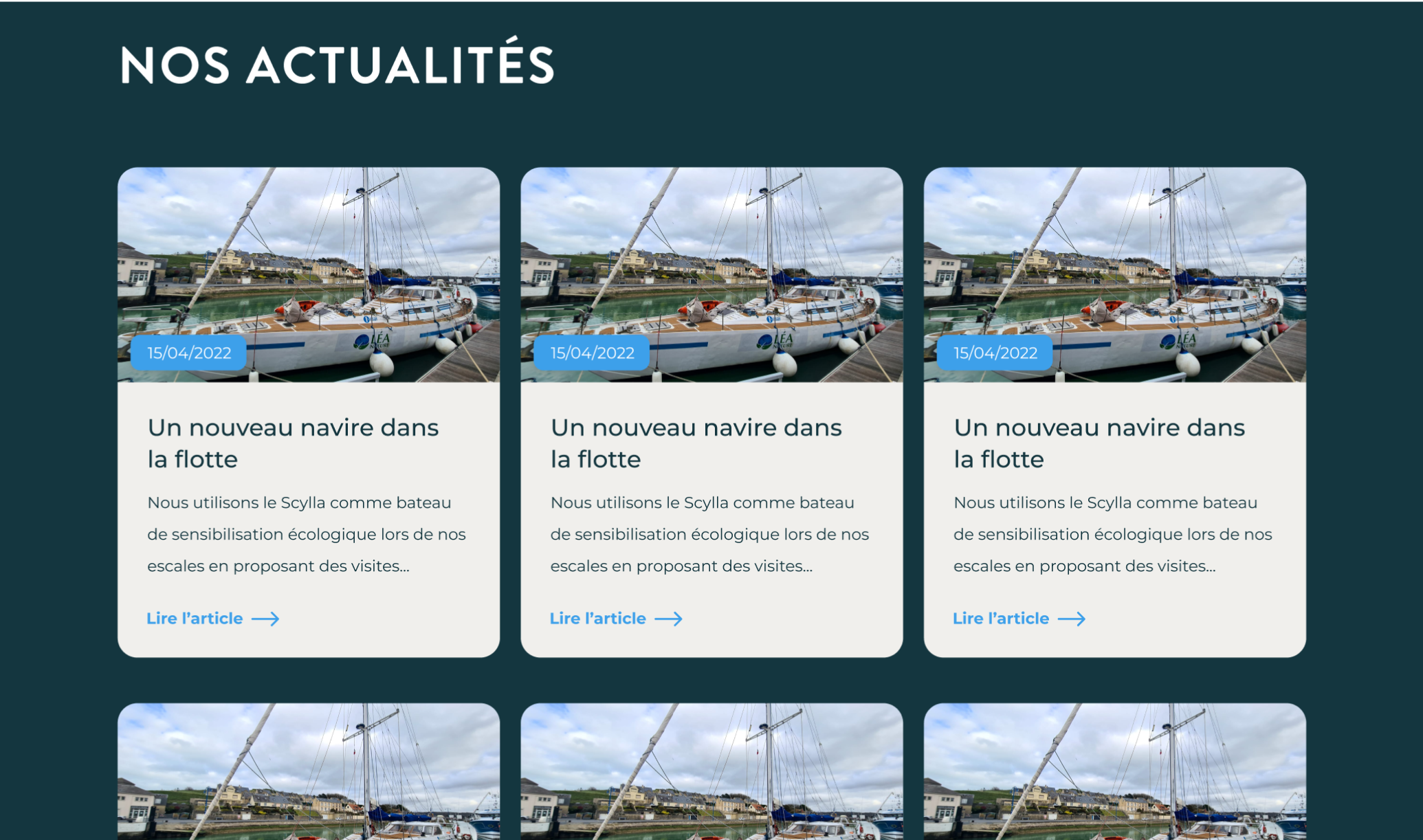 L’objectif a été de choisir un thème où il y a un nombre important de composants pour éviter la création sur-mesure et permettre aux équipes de Wings of the Ocean d’être autonomes au maximum dans la création de nouvelles pages une fois le site mis en ligne.
