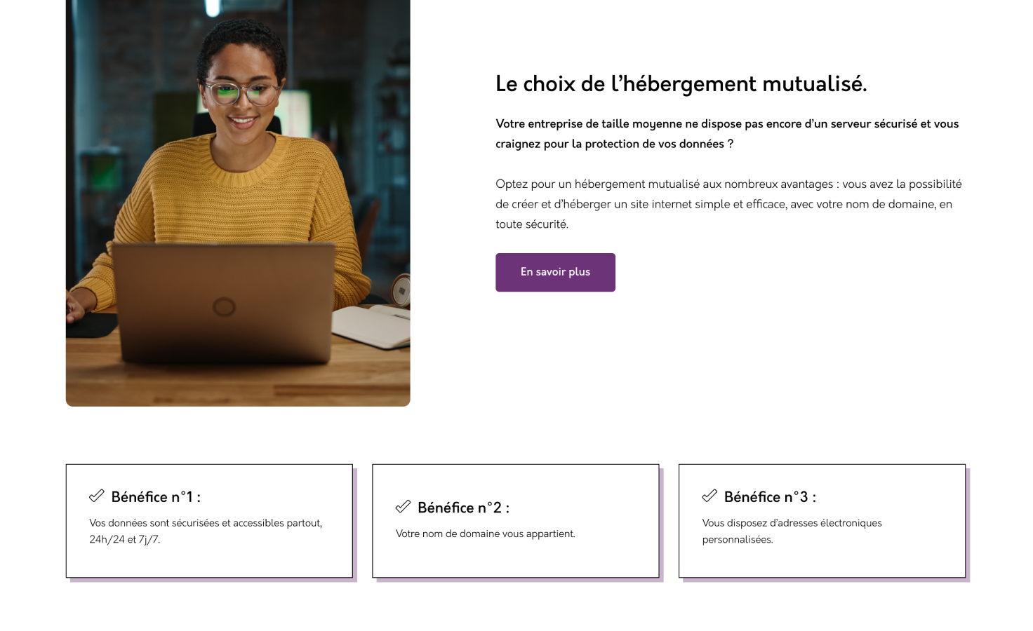 La première étape a été de centraliser l’ensemble des retours récoltés lors de la phase préliminaire du projet. Cela nous a permis de structurer les pages et le contenu associé. Un travail de benchmark nous a ensuite permis de nous inspirer des meilleures pratiques dans le secteur de l’IT.