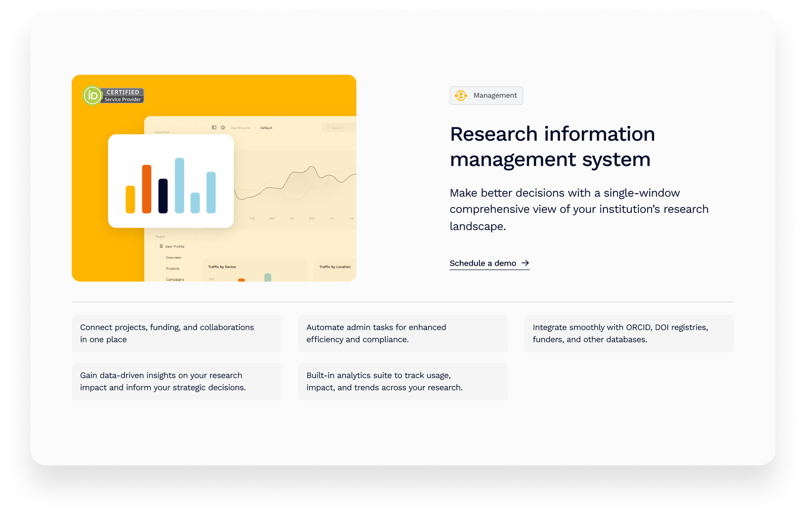 MyScienceWork est une entreprise spécialisée dans la valorisation de la recherche scientifique à l’échelle internationale. Elle développe des solutions de collecte, de gestion, de diffusion, de valorisation et d’analyse de données scientifiques à destination des universités, laboratoires, financeurs et éditeurs académiques.